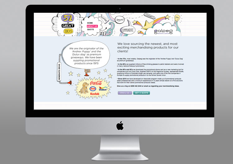 Galpeg Associates, a company specialised in Promotional Printed Products, was looking to design their exhibition stand (at Marketing Week Live) as well as a dedicated website and promotional give-away.